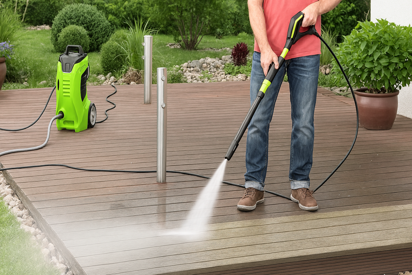 Das Gerät eignet sich perfekt für die Reinigung verschiedener Oberflächen. Durch seinen hohen Druck entfernt er Verunreinigungen mühelos und ohne Rückstände.